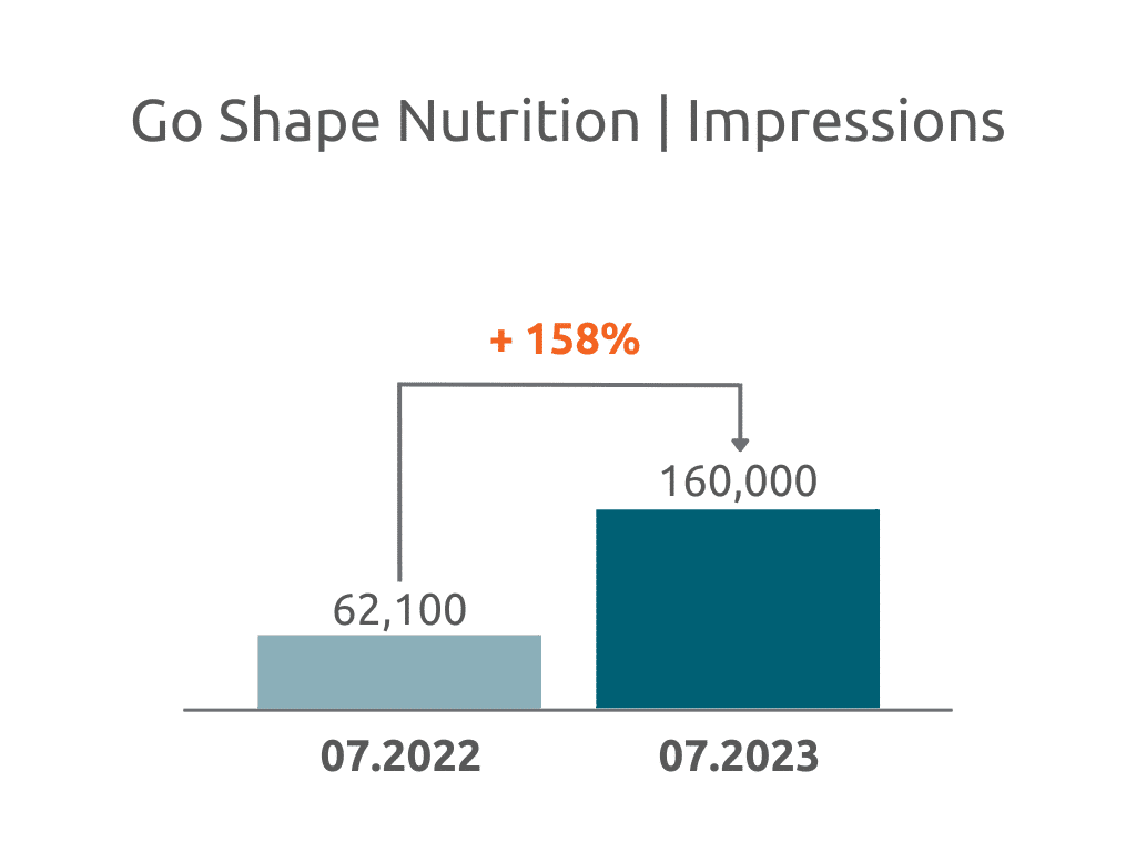 A nossa colaboração com a Go Shape Nutrition começou em 2022, a fim de otimizar o sítio Web para SEO. Como o cliente tem um negócio sazonal, também desenvolvemos campanhas pagas durante a época alta, na primavera e no verão. No geral, com base nestas estratégias de marketing digital, mais do que duplicámos o número de impressões no sítio Web e as receitas online também aumentaram.